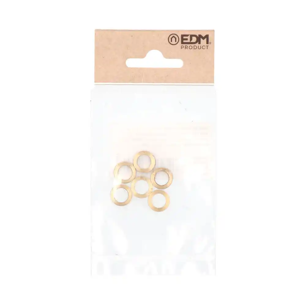 Este blister contiene ovalillos de latón, un componente versátil ideal para trabajos de bricolaje, montaje y decoración. Cada ovalillo tiene un diámetro exterior de 12 mm, un diámetro interior de 8 mm y un espesor de 1,5 mm. Fabricados en latón con un acabado pulido, ofrecen un aspecto cálido y son resistentes a la oxidación. Son perfectos para usar como separadores, arandelas decorativas o elementos de unión en proyectos de carpintería, manualidades o pequeñas reparaciones. (Los tornillos para su fijación no están incluidos)