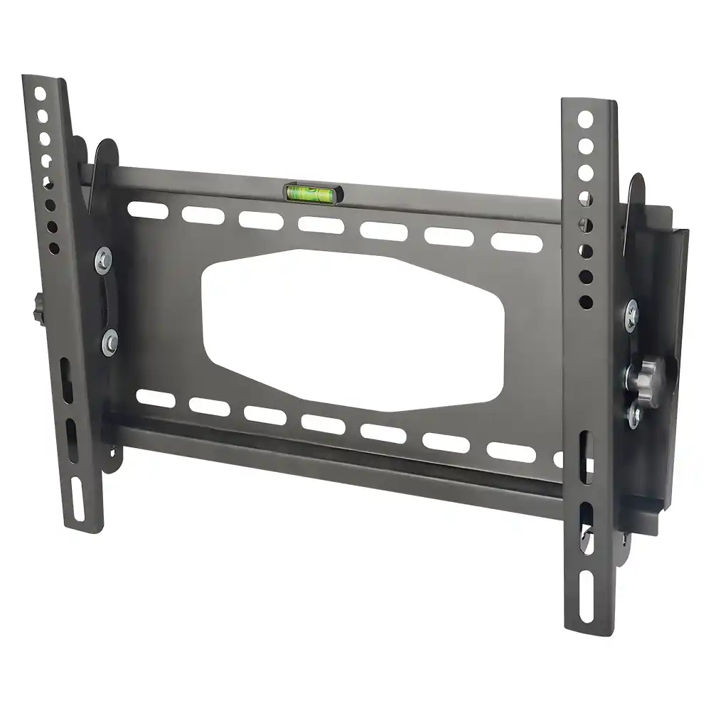 Este soporte universal para televisores, en color negro, está diseñado para sujetar de forma segura la mayoría de pantallas de entre 22 y 47 pulgadas y con un peso de hasta 45 kg. Ofrece un ajuste de inclinación de -15° a +15° para evitar reflejos y cuenta con un patrón de montaje VESA que admite configuraciones de hasta 400×300 mm. Su diseño sitúa la pantalla a solo 60 mm de la pared para un acabado discreto. La instalación es sencilla y segura, e incluye un nivel incorporado para facilitar el montaje junto con toda la tornillería necesaria.